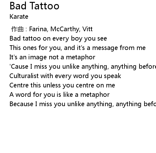 | [00:43:700] | Bad tattoo on every boy you see |