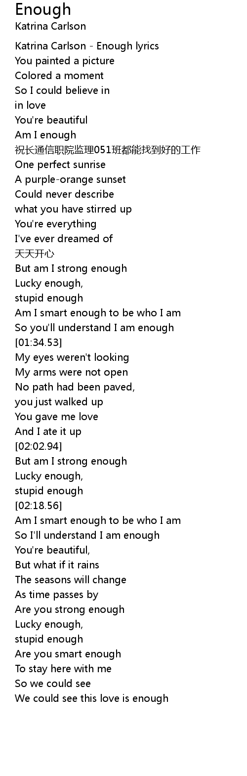 | [00:00.54] | Katrina Carlson Enough lyrics |