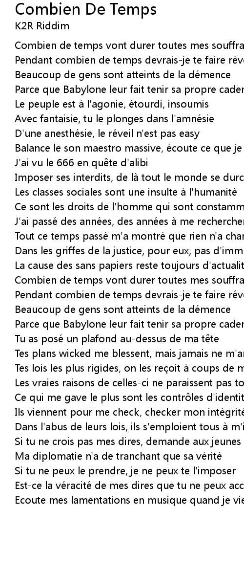 | 歌曲 | Combien De Temps |