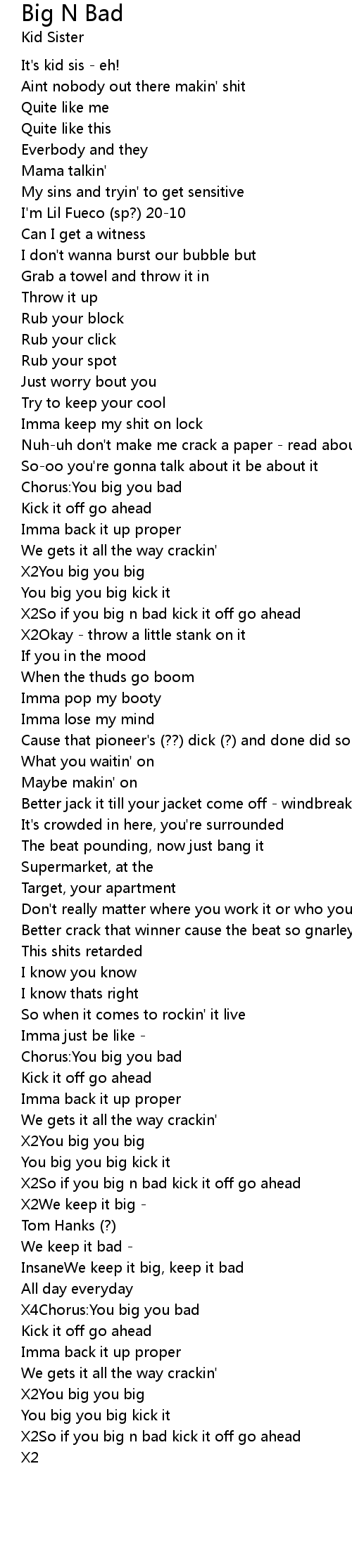 Chorus:You big you bad |