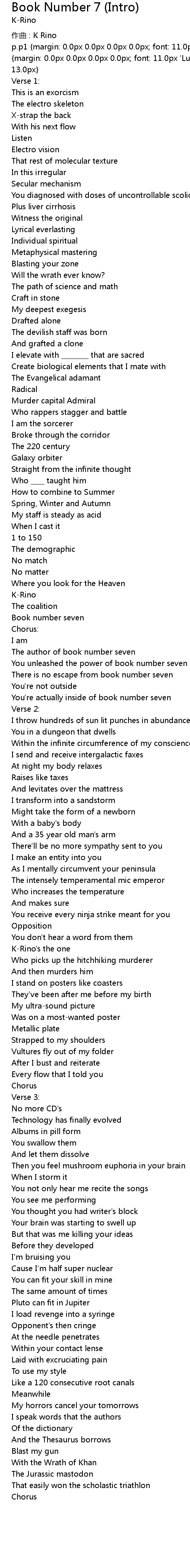 | 歌曲 | Book Number 7 (Intro) |