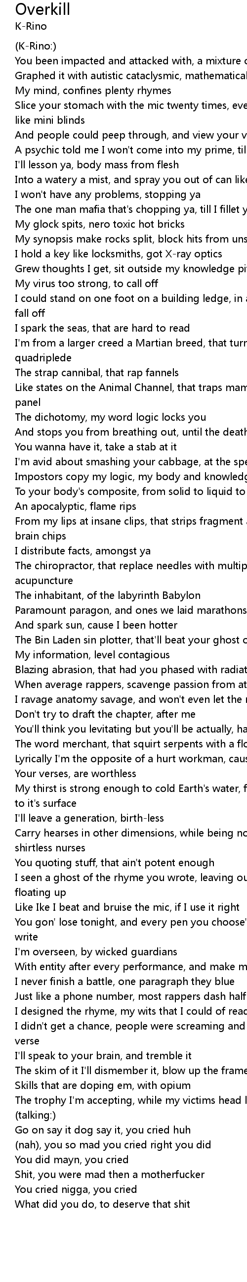 | 歌曲 | Overkill |