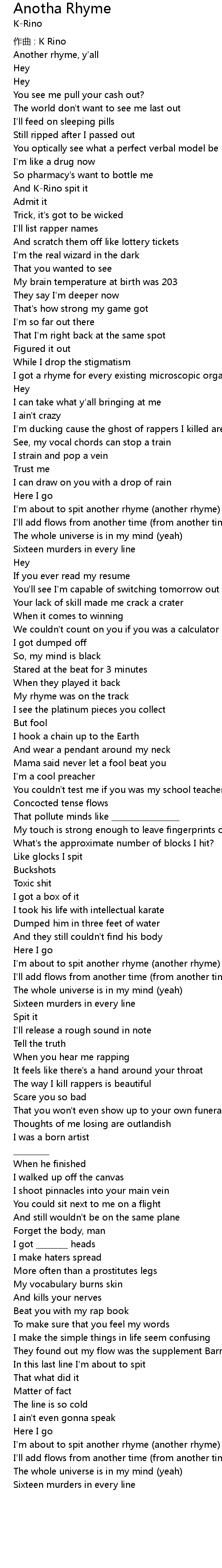 | 歌曲 | Anotha Rhyme |