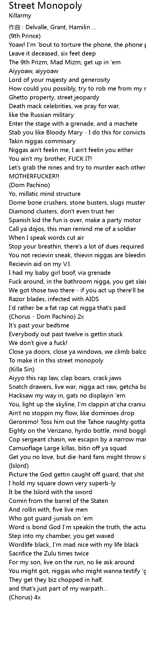 | Snatch drawers, live war, nigga act raw, getcha back torn | |