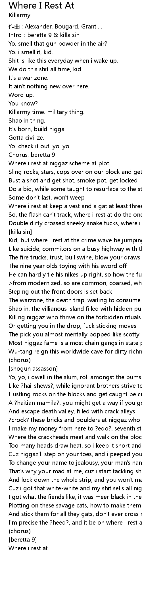 | Where i rest at keep a vest and a gat at least three ways back | |
