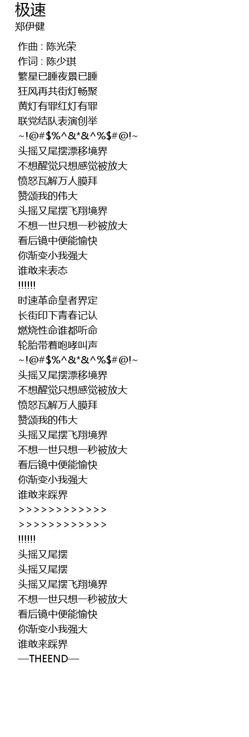 | 歌曲 | 极速 |