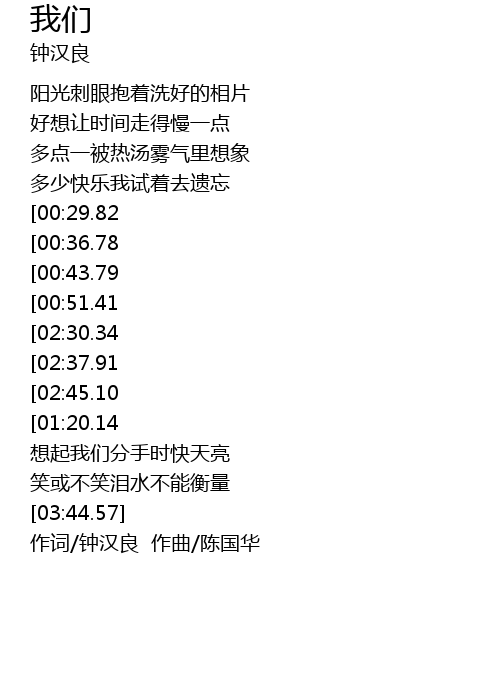 | [03:56.45] | 作词/钟汉良 作曲/陈国华 |