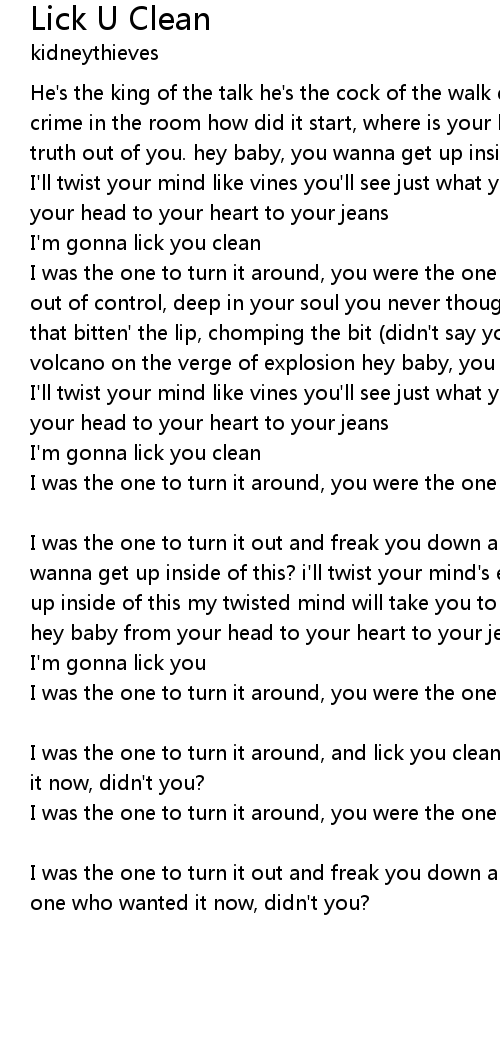 I was the one to turn it out and freak you down and lick you clean. hey baby you wanna get up inside of this? i'll twist your mind's eye hey baby, you wanna get up inside of this my twisted mind will take you to the place you've never been hey baby from your head to your heart to your jeans |