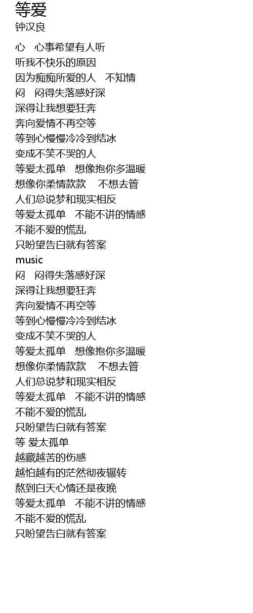 | [01:40.69] | 等爱太孤单 不能不讲的情感 |