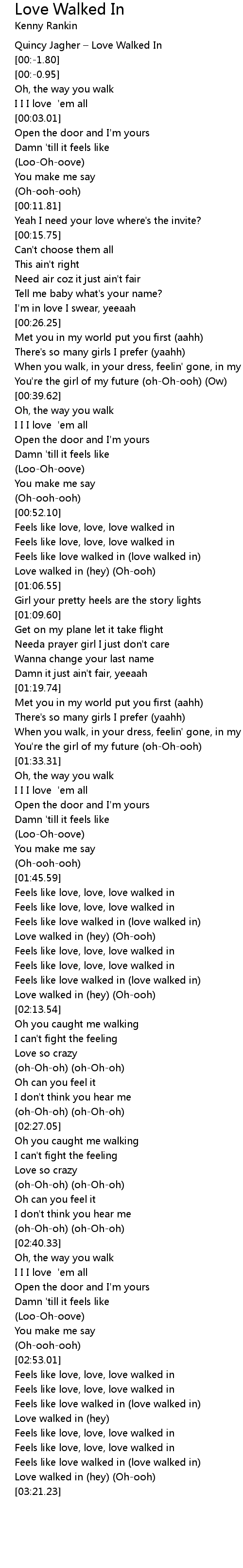 | [01:03.43] | Love walked in (hey) (Oh-ooh) |