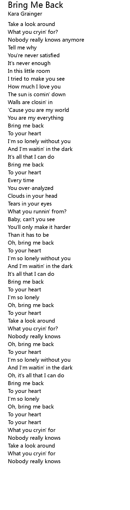 Bring Me Back 歌词