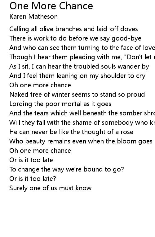 Oh one more chance |
