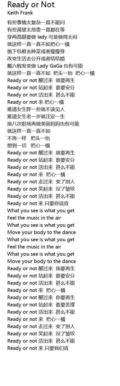 | [01:51.96] | Ready or not xing guo lai jiu yao zai sheng |