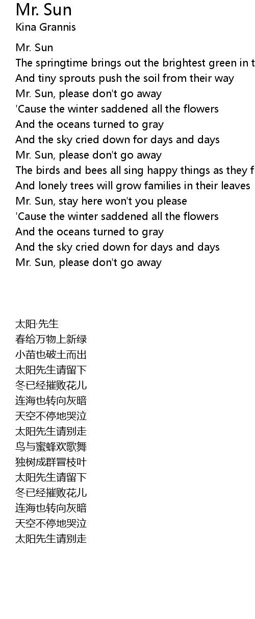Mr. Sun, stay here won't you please |