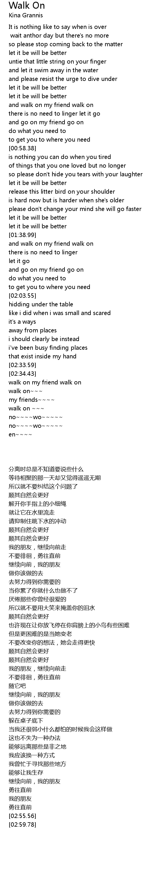 walk on my friend walk on |