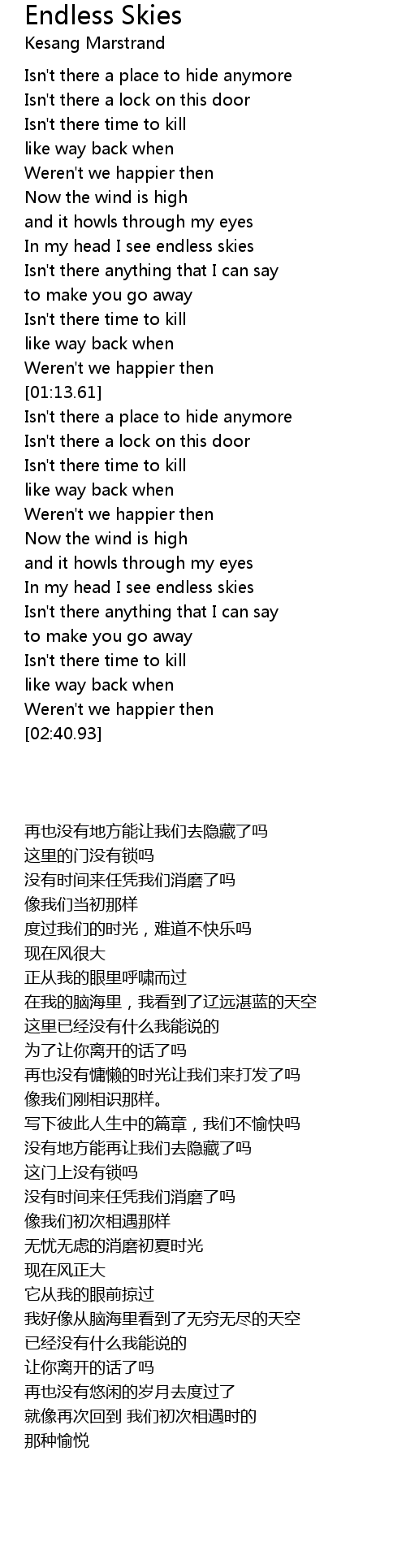 In my head I see endless skies |