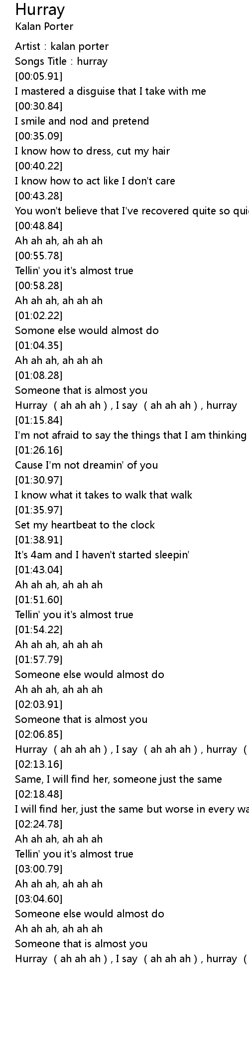 | [01:10.34] | Hurray ah ah ah, I say ah ah ah, hurray |