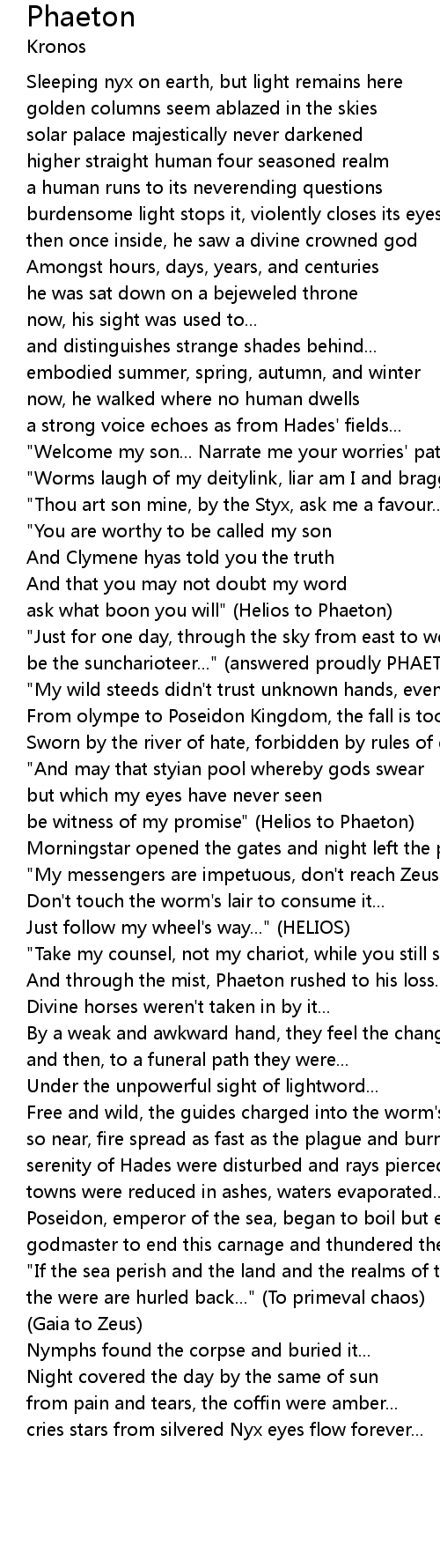 be the suncharioteer..." (answered proudly PHAETON) |
