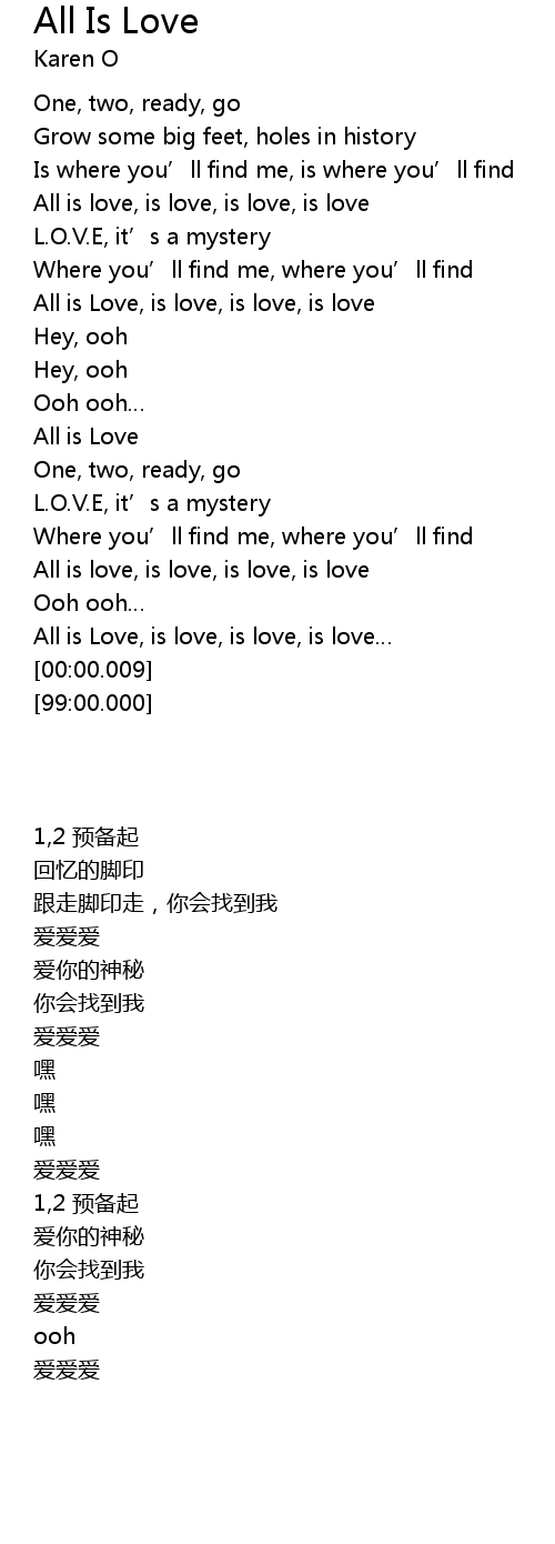 | [02:27.99] | All is Love, is love, is love, is love… |