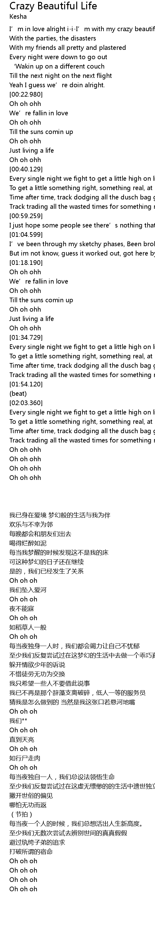 | [00:05.300] | I’m in love alright i-i-I’m with my crazy beautiful life |