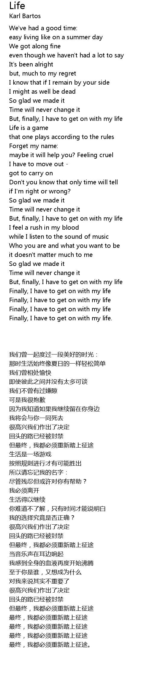 But, finally, I have to get on with my life |