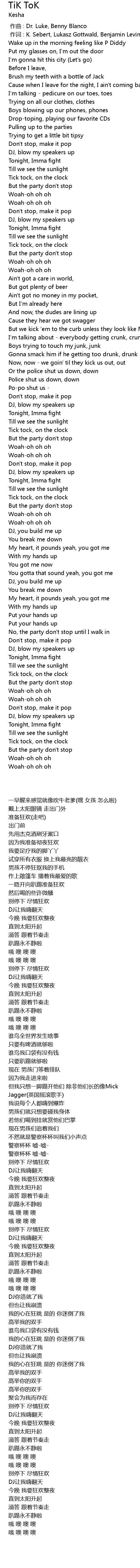 | [00:00.259] | 作词 : K. Sebert, Lukasz Gottwald, Benjamin Levin |