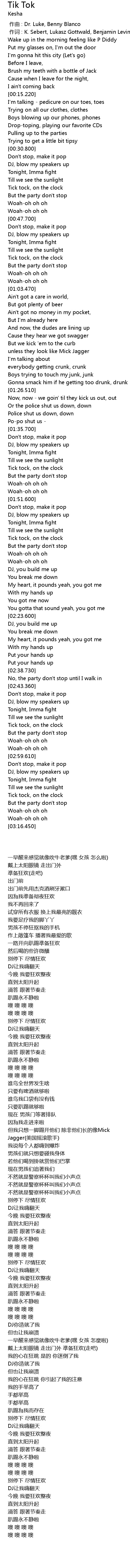 | [00:00.223] | 作词 : K. Sebert, Lukasz Gottwald, Benjamin Levin |