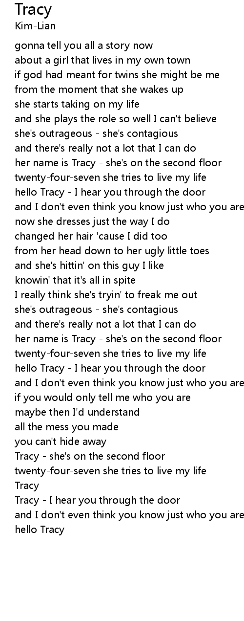 | Tracy - I hear you through the door | |