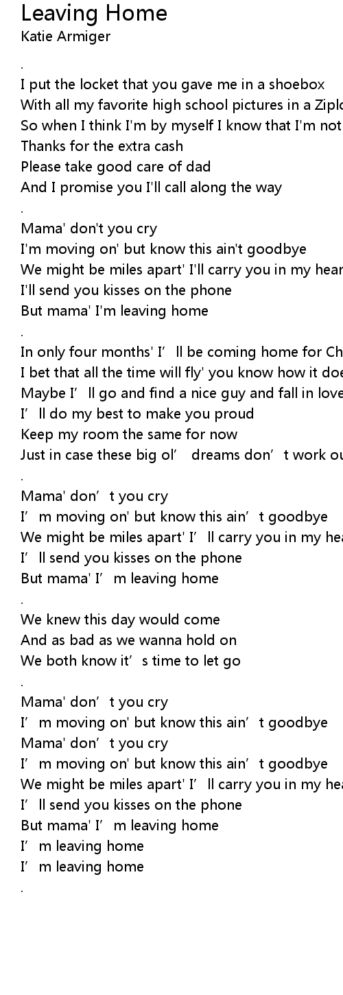 | [03:06.63] | I' m leaving home |
