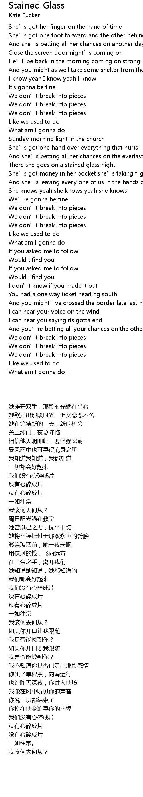 | [00:53.20] | We don' t break into pieces |