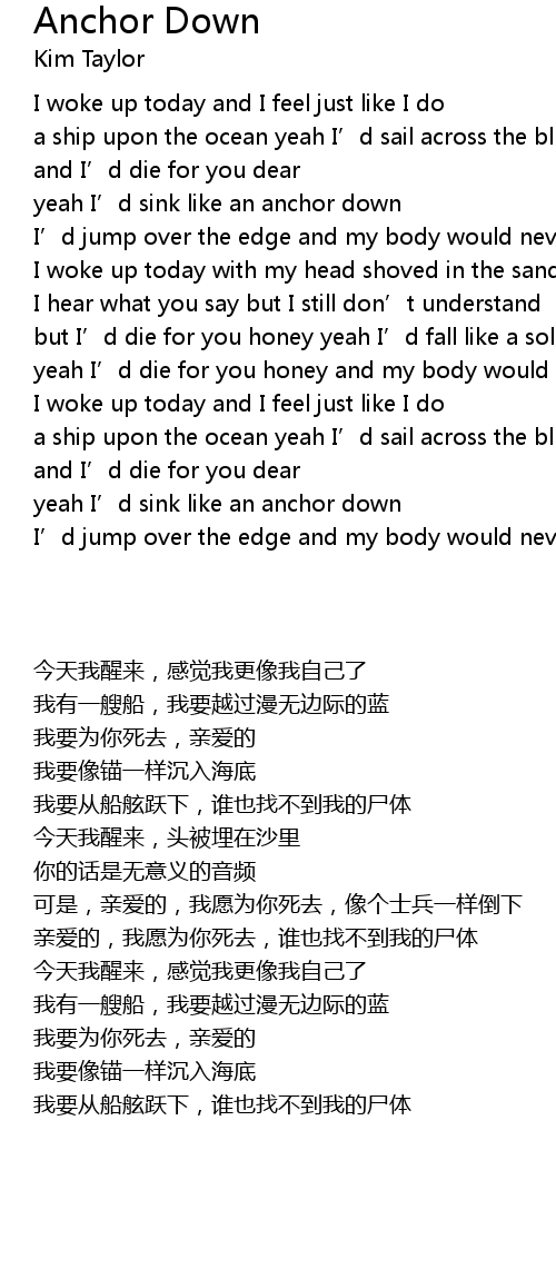 | [00:30.12] | yeah I' d sink like an anchor down |