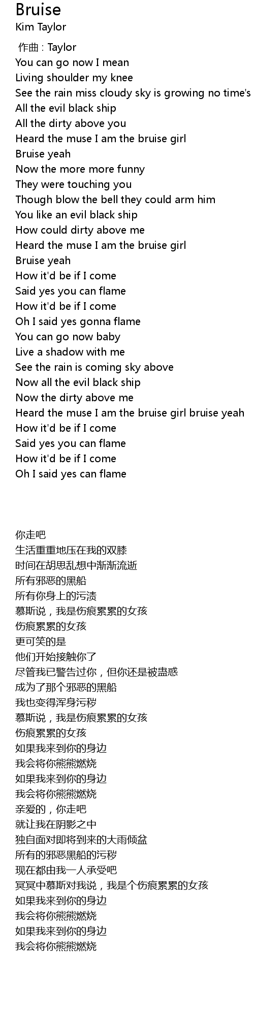 | [02:06.93] | Heard the muse I am the bruise girl bruise yeah |