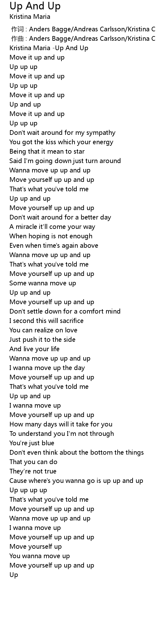 | [02:06.273] | Cause where' s you wanna go is up up and up |
