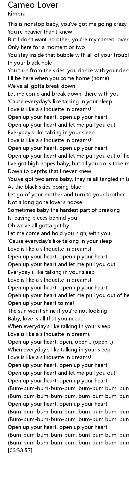| [00:08.67] | But I don't want no other, you're my cameo lover |