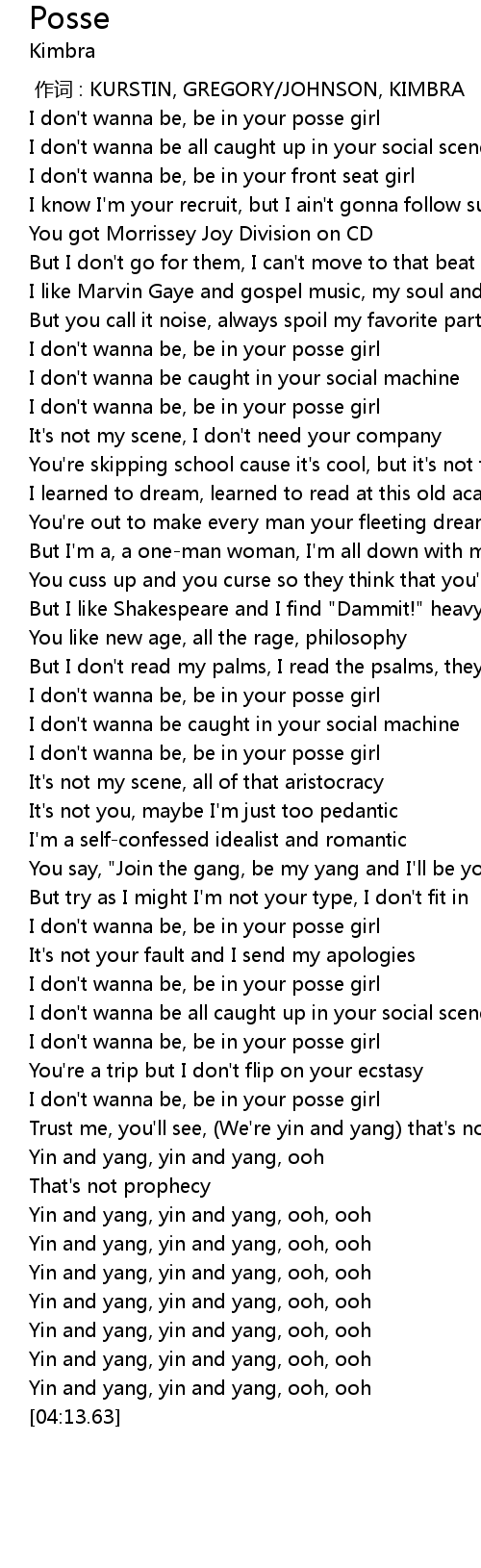 | [03:02.67] | I don't wanna be, be in your posse girl |