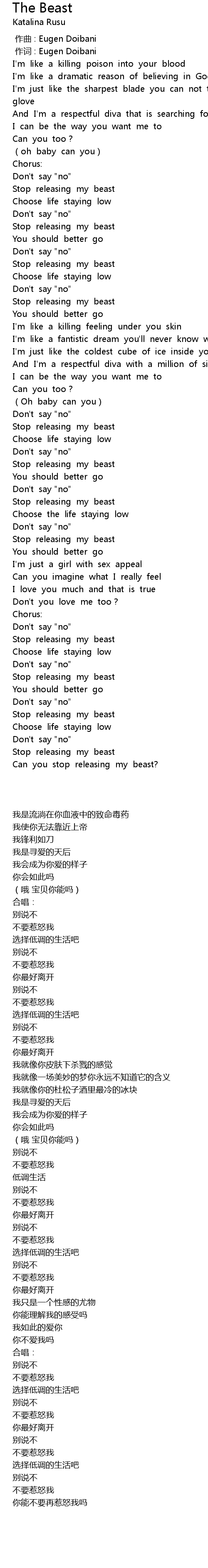 | [02:39.110] | Stop releasing my beast |