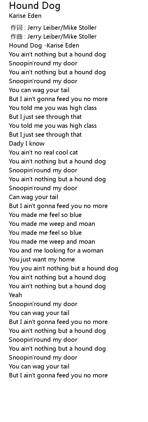 | [00:17.629] | You ain' t nothing but a hound dog |