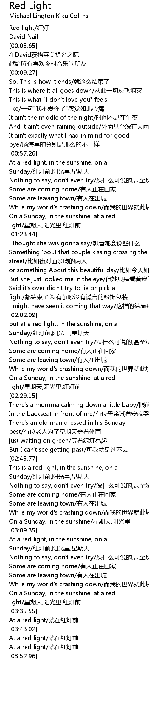 | [03:50.63] | At a red light/就在红灯前 |
