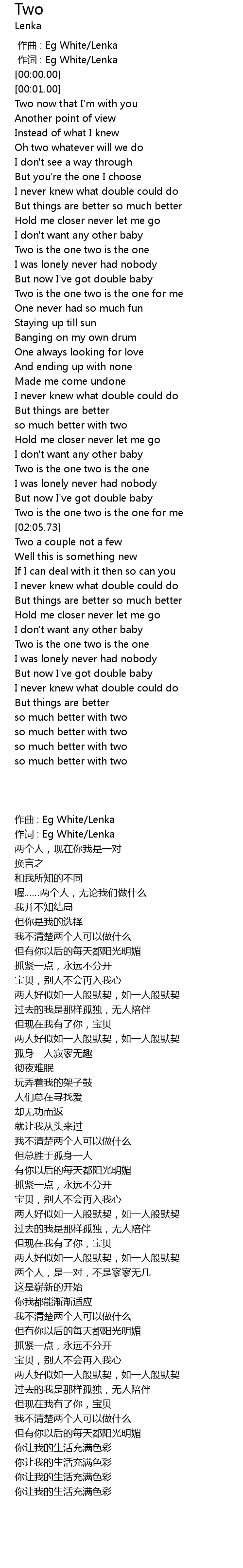 | [00:00.00] | zuò cí : Eg White Lenka |