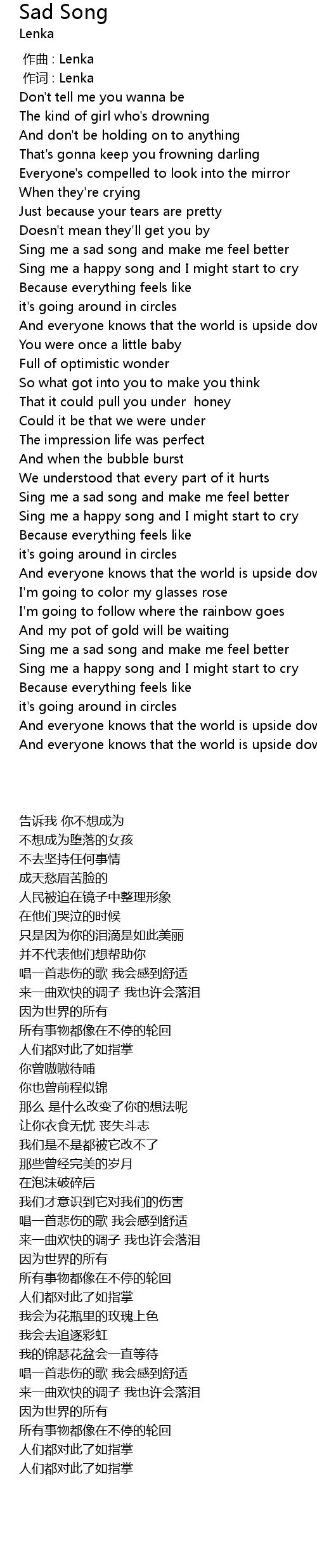 | [00:01.00] | 作词 : Lenka |