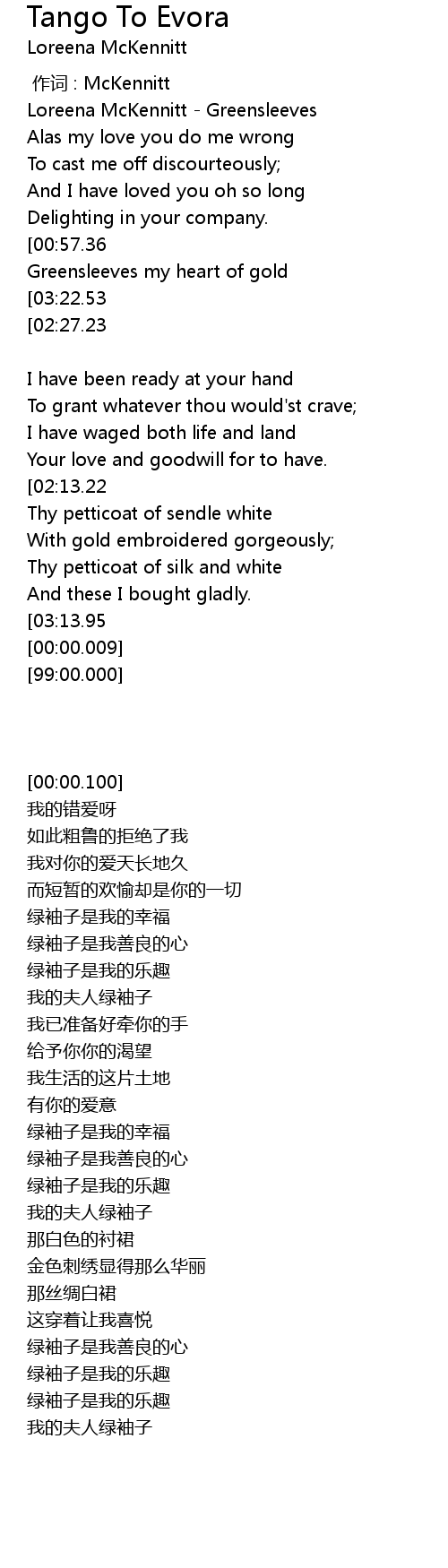 | [00:00.100] | Loreena McKennitt Greensleeves |