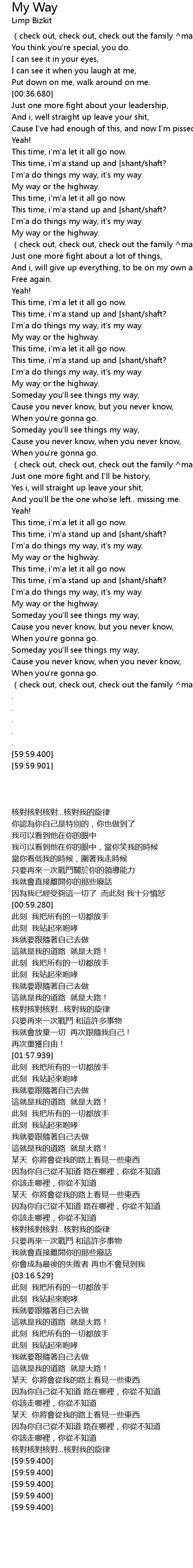 | [03:25.219] | 這就是我的道路 就是大路! |