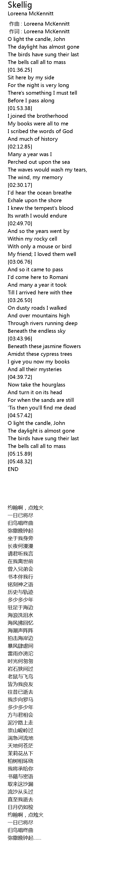 | [00:00.00] | 作曲 : Loreena McKennitt |