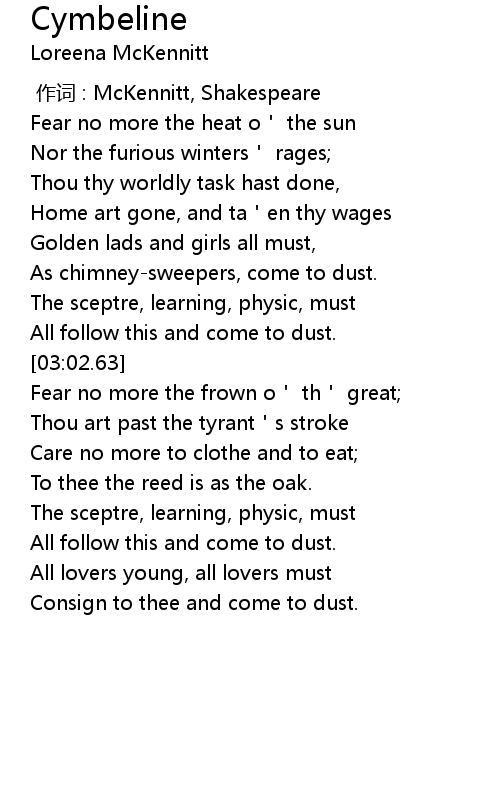 | [02:34.93] | As chimneysweepers, come to dust. |