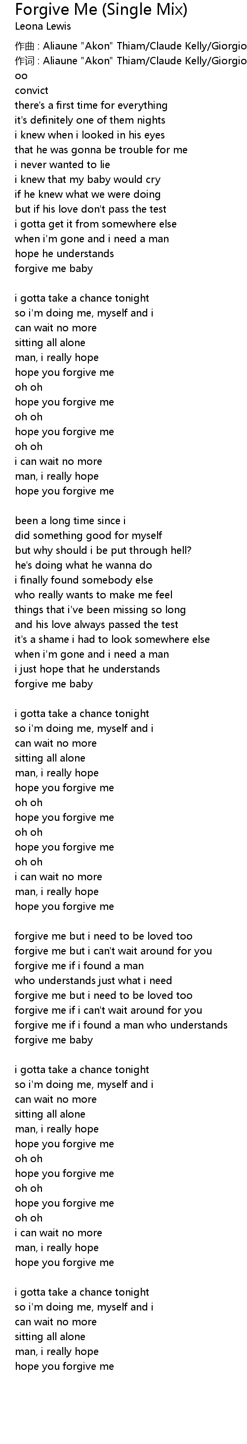 | 歌曲 | Forgive Me (Single Mix) |
