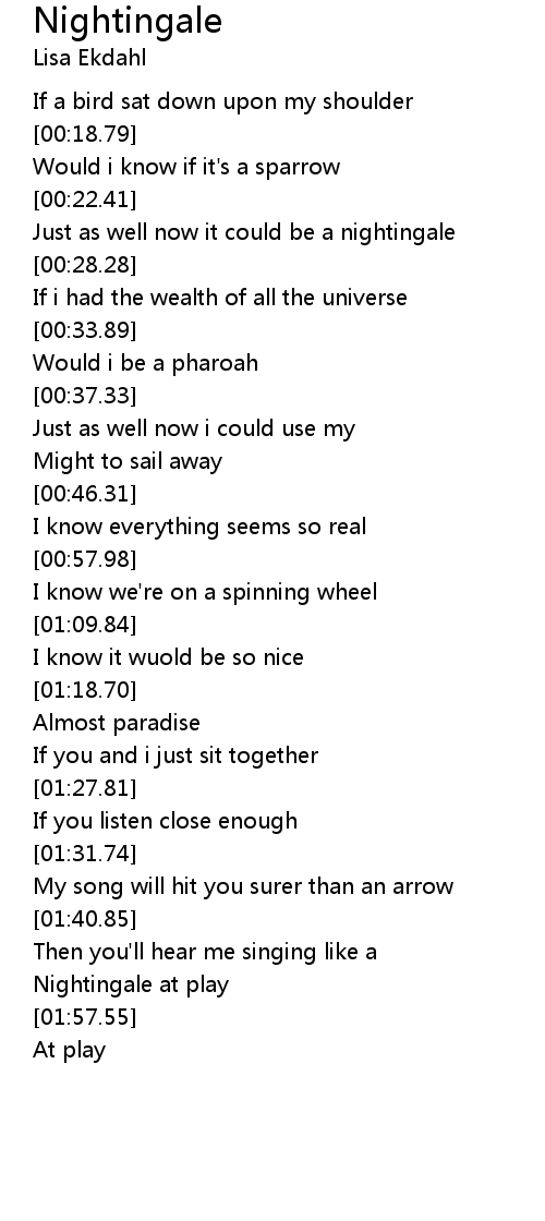 Just as well now it could be a nightingale |