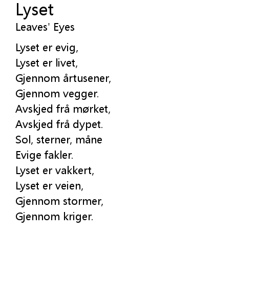 Lyset er evig, |