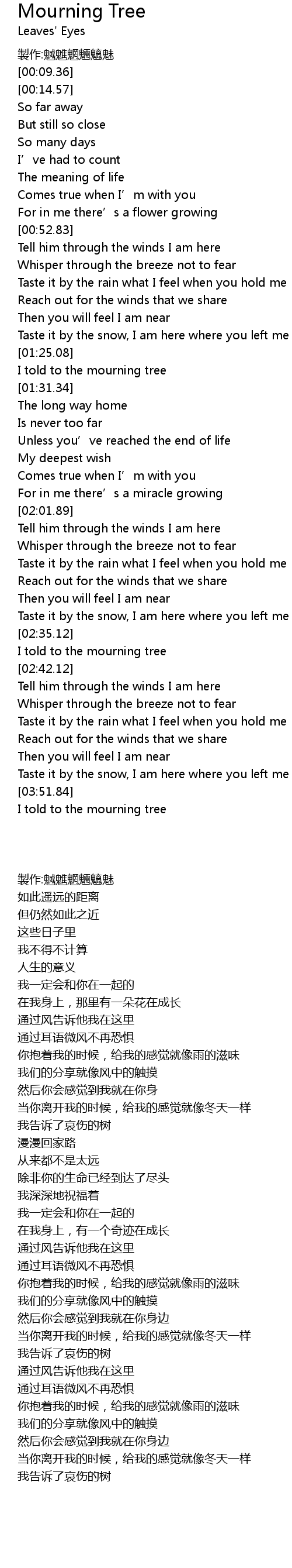 | [02:35.56] | I told to the mourning tree |