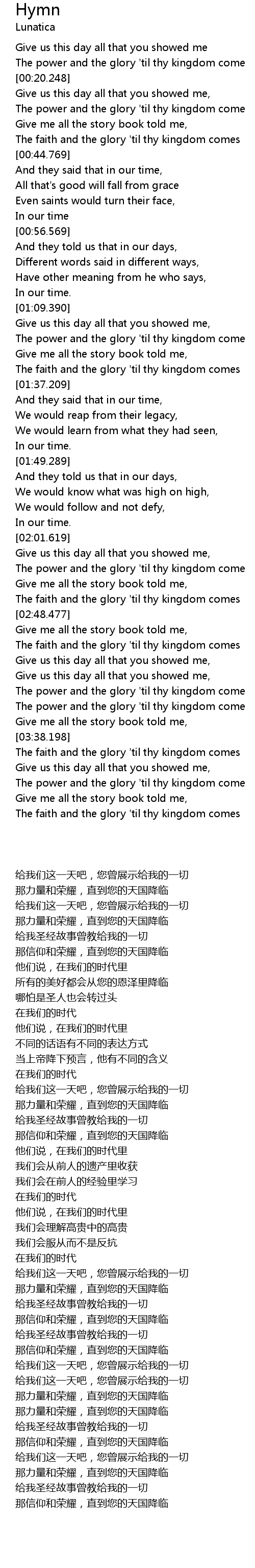 The faith and the glory 'til thy kingdom comes |