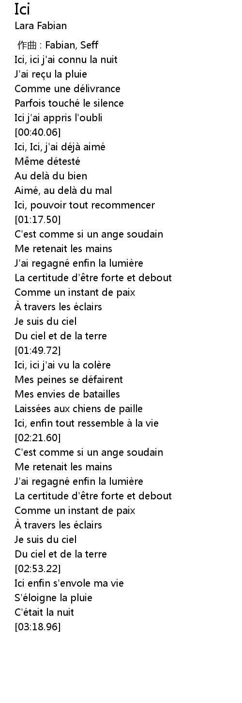 | [00:47.41] | Ici, Ici, j' ai de ja aime |